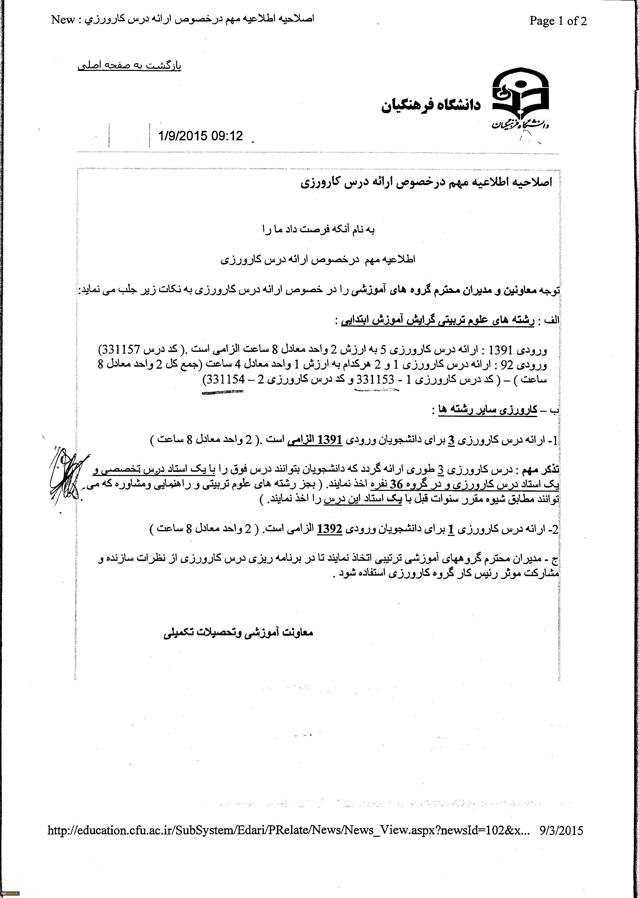 اصلاحیه کارورزی