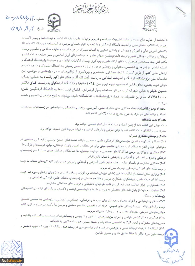تفاهم دانشگاه فرهنگیان با پژوهشگاه فرهنگ واندیشه اسلامی