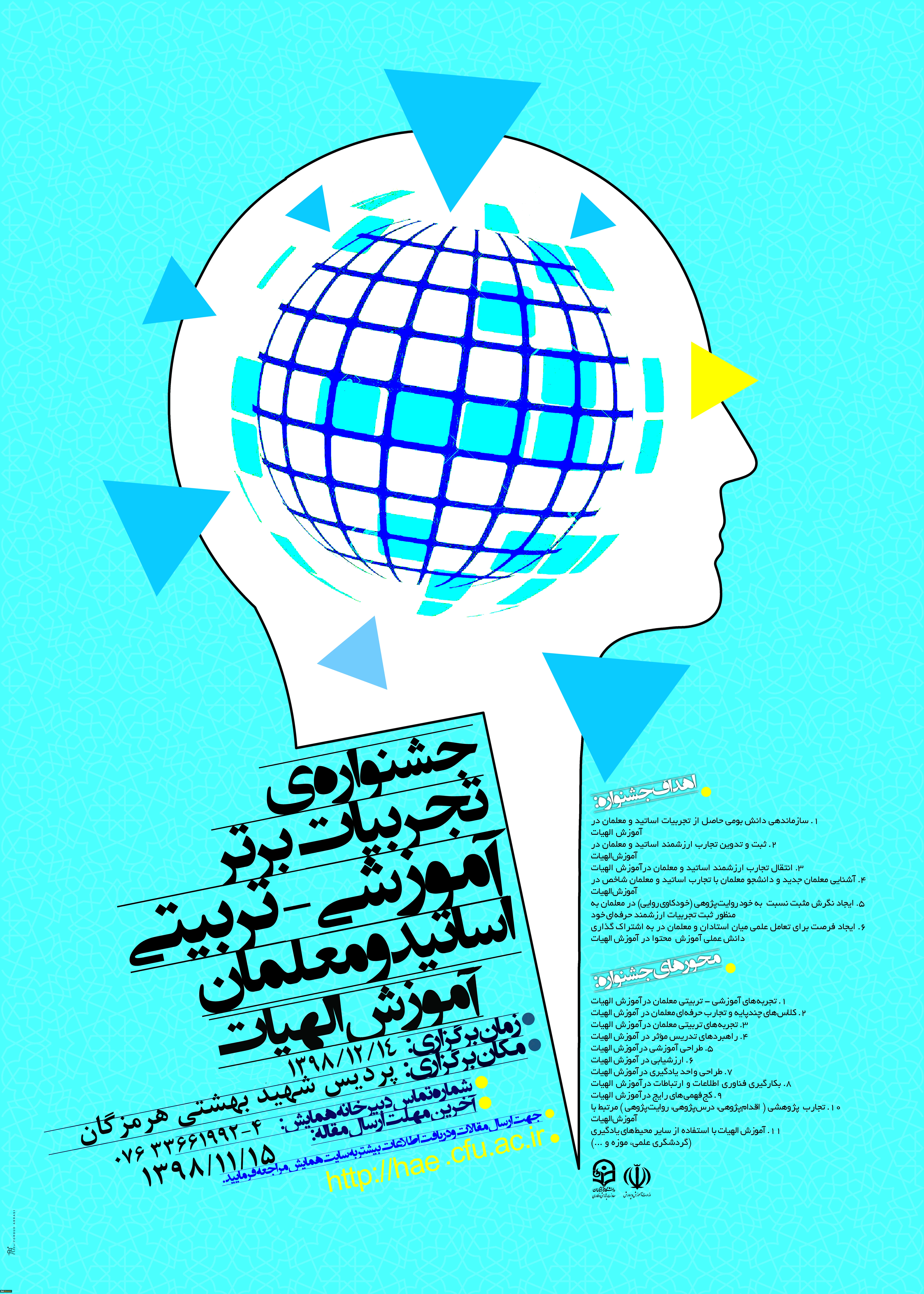 امتیاز دهید : جشنواره کشوری تجربیات برتر در آموزش الهیات و معارف اسلامی سهشنبه 1 بهمن 1398 ساعت 9:48