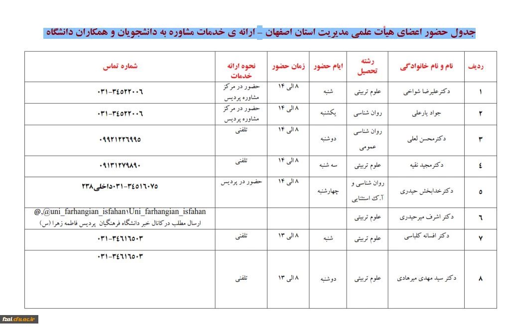 برنامه ارائه خدمات مشاوره به دانشجویان و همکاران