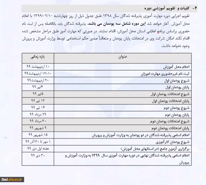 کلیات و تقویم آموزشی دوره مهارت آموزان