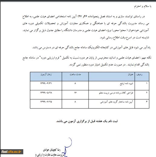 امتیاز دهید : تقویم آموزشی دوره های آموزشی ویژه اعضای هیئت علمی و مدرسان دوشنبه 16 تیر 1399 ساعت 7:58
