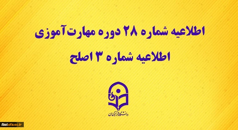 امتیاز دهید : اطلاعیه شماره 28 دوره مهارت آموزی، اطلاعیه شماره 3 اصلح چهارشنبه 19 آذر 1399 ساعت 13:52