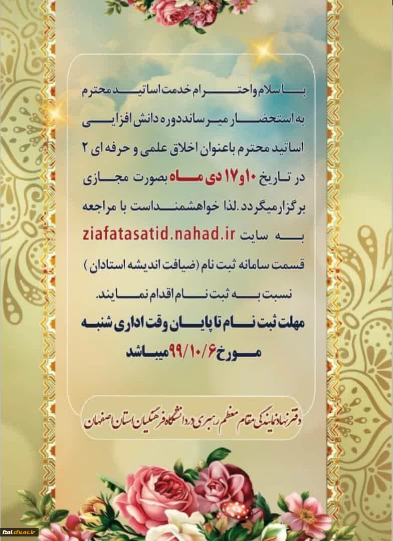امتیاز دهید : دوره دانش افزایی اساتید محترم باعنوان اخلاق علمی و حرفه ای ۲ یکشنبه 30 آذر 1399 ساعت 18:30