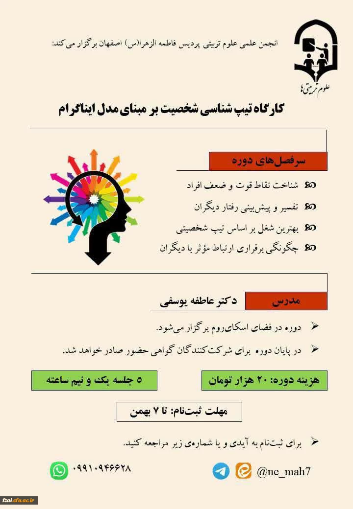 برگزاری کارگاه تیپ شناسی شخصیت بر اساس مدل ایناگرام