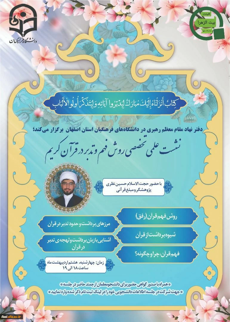 امتیاز دهید : برگزاری نشست علمی تخصصی روش های فهم و تدبر در قرآن کریم شنبه 11 اردیبهشت 1400 ساعت 8:26