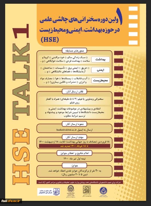 امتیاز دهید : اطلاعیه اولین دوره سخنرانی های چالشی علمی در حوزه بهداشت، ایمنی و محیط زیست شنبه 8 خرداد 1400 ساعت 9:34