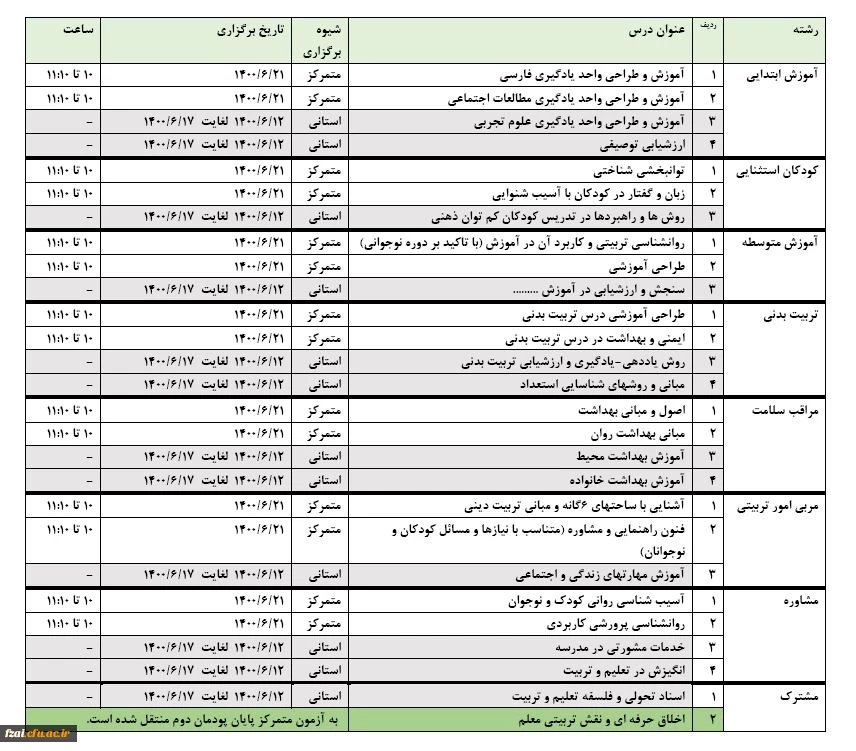 جزییات مربوط به آزمونهای پایان پودمان اول دو دوره مهارت آموزی (سری سوم + آزمون استخدامی های99)