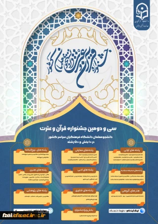 تمدید مهلت ثبت نام در سی و دومین جشنواره فرهنگی و اجتماعی (قرآن و عترت) دانشگاه فرهنگیان