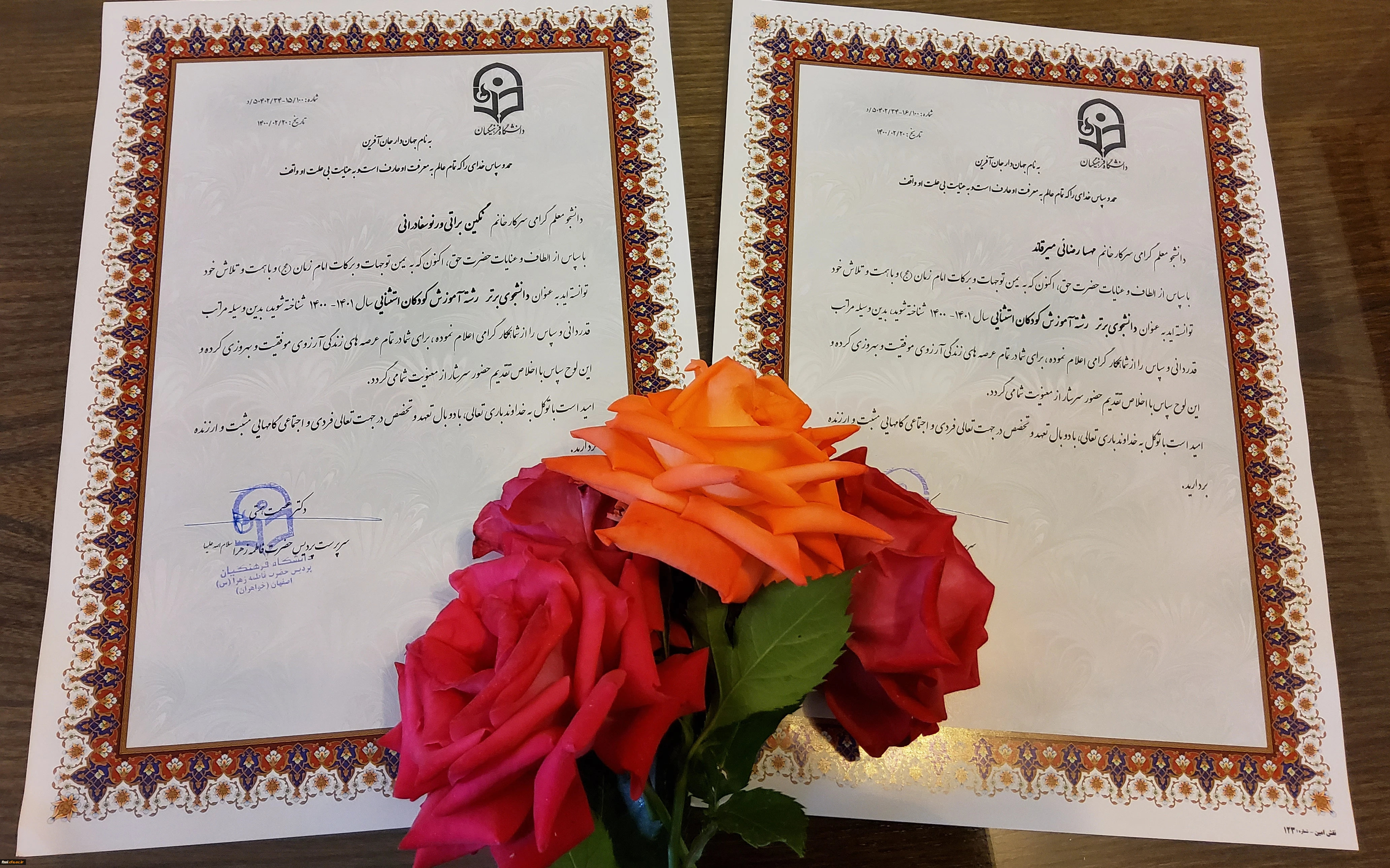 تقدیر از دانشجویان برتر علمی رشته کودکان استثنایی به مناسبت دهه سرآمدی آموزش پردیس فاطمه زهرا (س) اصفهان
