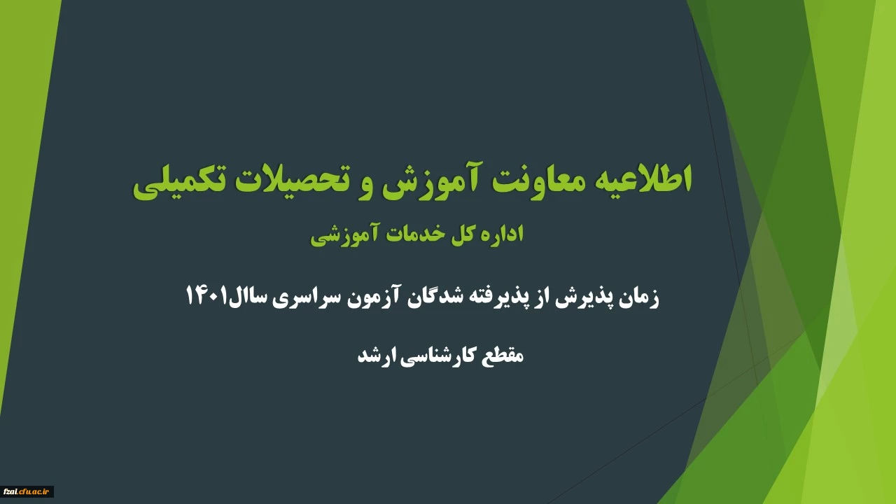 اطلاعیه معاونت آموزشی و تحصیلات تکمیلی (اداره کل خدمات آموزشی) زمان پذیرش از پذیرفته شدگان آزمون سراسری سال 1401 در مقطع کارشناسی ارشد ناپیوسته
