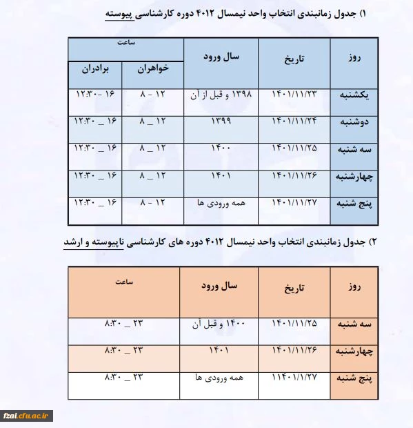 جدول زمانبندی انتخاب واحد نیمسال دوم 1402-1401