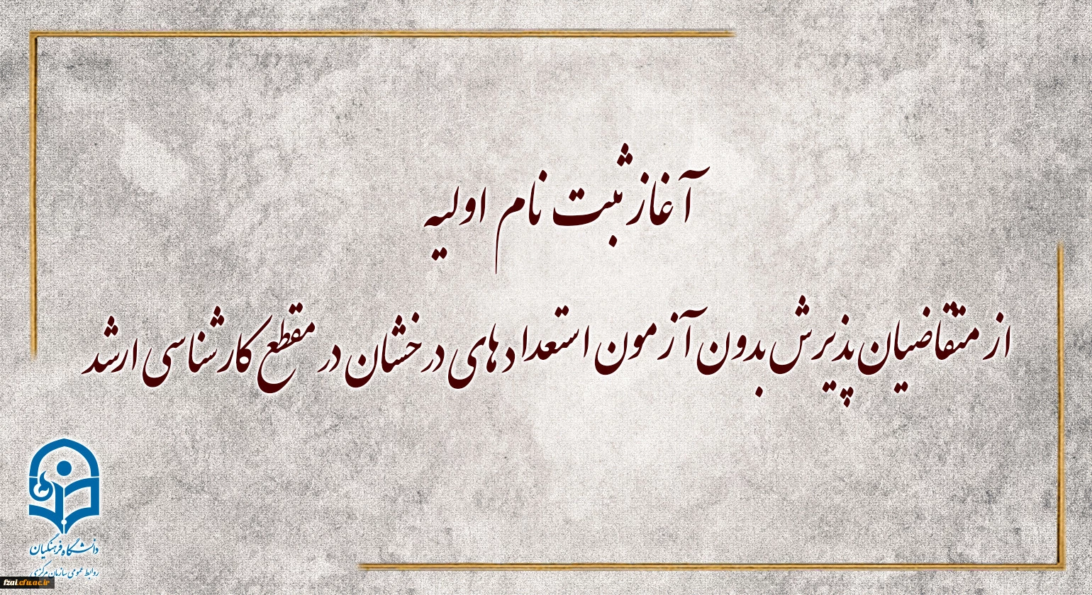 معاونت آموزشی و تحصیلات تکمیلی دانشگاه خبر داد: آغاز ثبت نام اولیه از متقاضیان پذیرش بدون آزمون استعداد های درخشان در مقطع کارشناسی ارشد