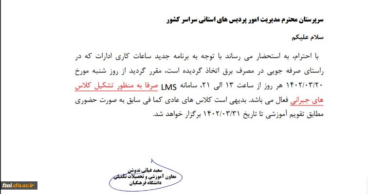 امتیاز دهید : اعلام ساعت برگزاری کلاس های جبرانی نیمسال 4012 در سامانه LMS یکشنبه 21 خرداد 1402 ساعت 7:32