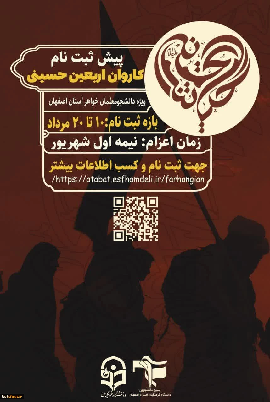 پیش ثبت نام کاروان اربعین حسینی ۱۴۰۲ ویژه دانشجومعلمان خواهر دانشگاه فرهنگیان استان اصفهان
