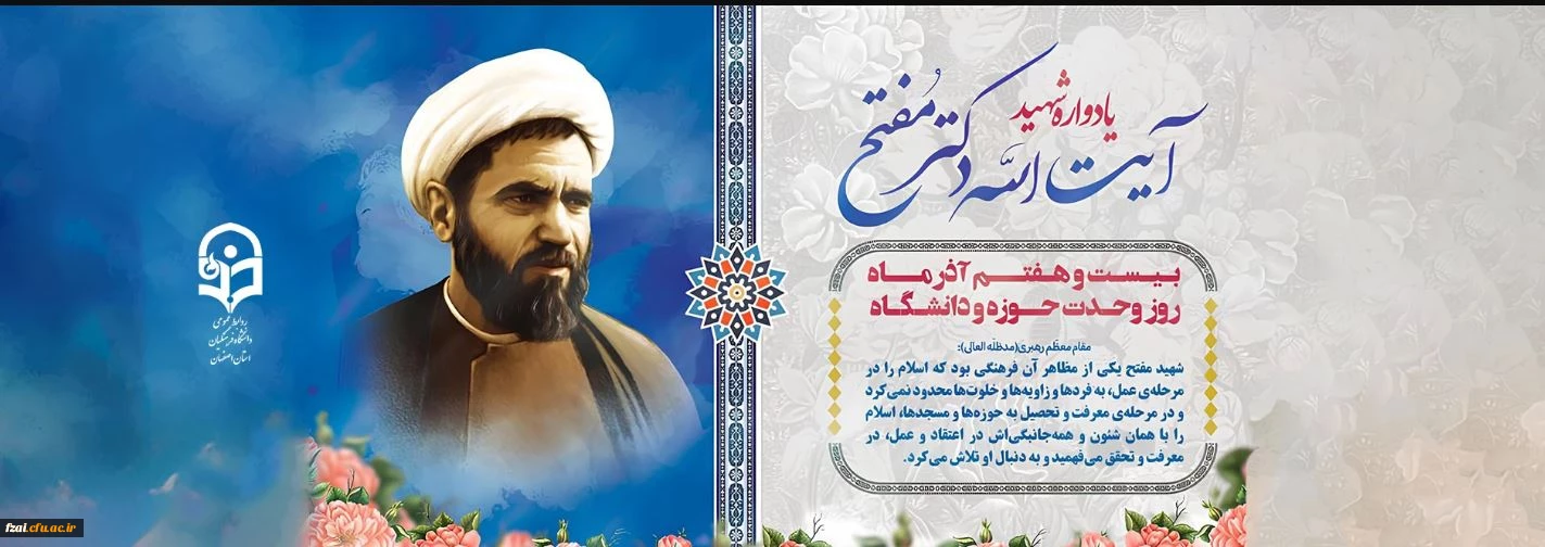 ۲۷ آذر، سالروز شهادت و عروج سرخِ مجاهدی خستگی ناپذیر عالم ربانی، شهید آیت الله مفتح و روز وحدت حوزه و دانشگاه گرامی باد