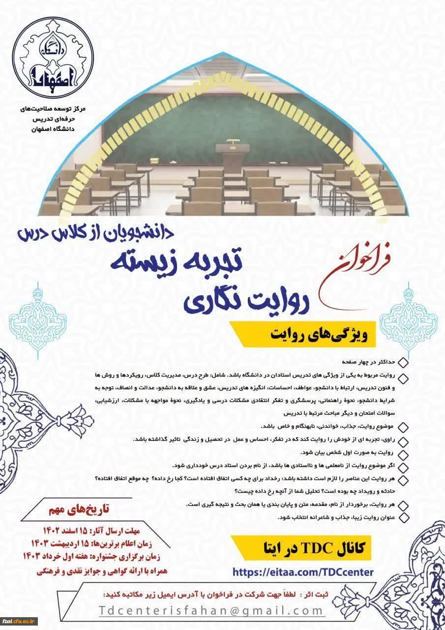 امتیاز دهید : اولین جشنواره ملی روایت نگاری تجربه زیسته دانشجویان از کلاس درس دوشنبه 9 بهمن 1402 ساعت 8:58