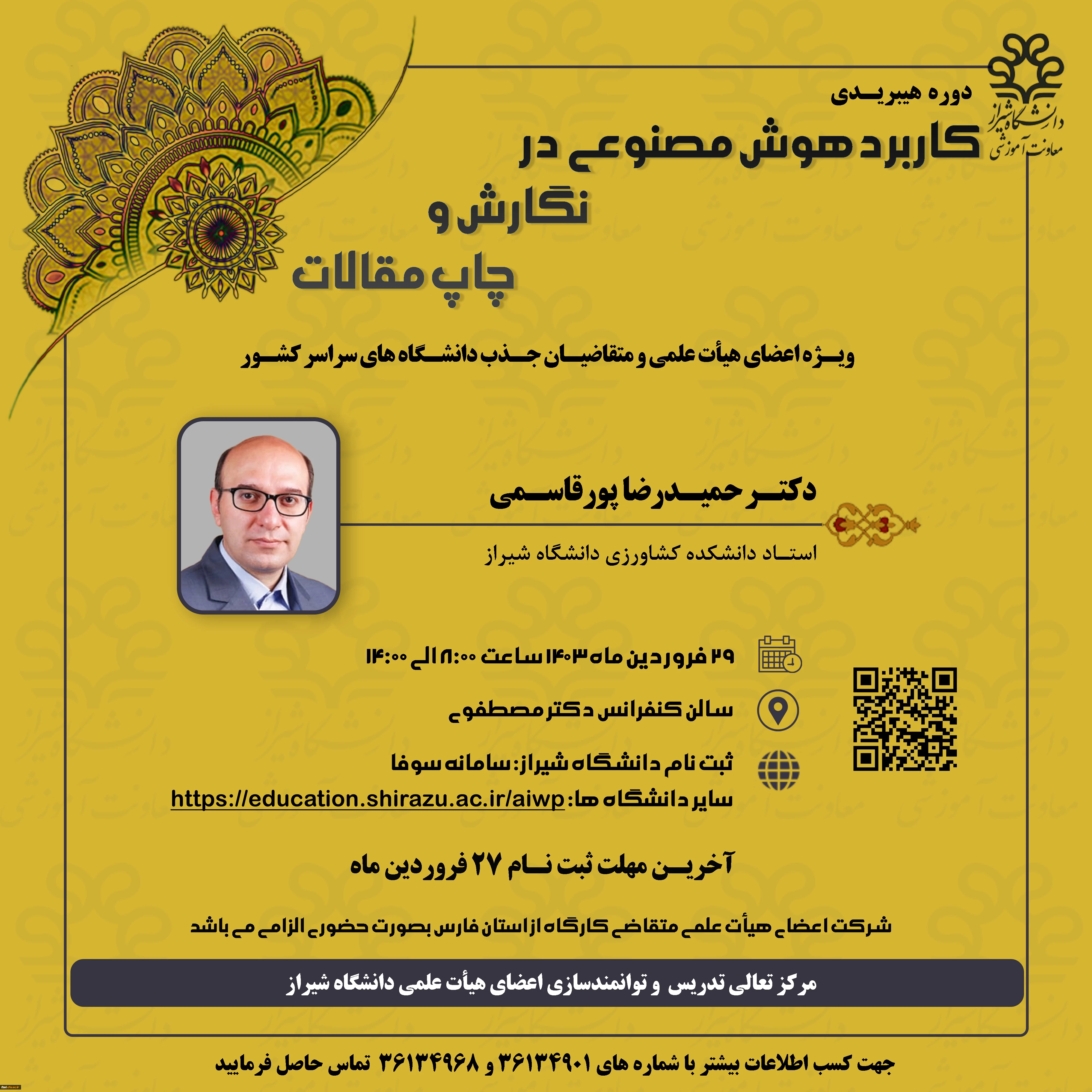 امتیاز دهید : کارگاه آموزشی "کاربرد هوش مصنوعی در نگارش و چاپ مقالات"فروردین ماه 1403 شنبه 1 اردیبهشت 1403 ساعت 13:07
