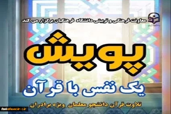 پویش همگانی یک نفس با قرآن از سوی اداره قرآن و عترت معاونت فرهنگی و تربیتی دانشگاه فرهنگیان برگزار می شود.