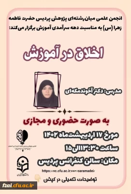 هشتمین جلسه از سلسله جلسات طرح کلی اندیشه اسلامی با حضور حجت الاسلام و المسلمین استاد خدایی درپردیس فاطمه الزهرا(س) به صورت حضوری و مجازی برگزار شد. به گزارش روابط عمومی پردیس هشتمین جلسه از سلسله جلسات طرح کلی اندیشه اسلامی با حضور حجت الاسلام و المسلمین ...